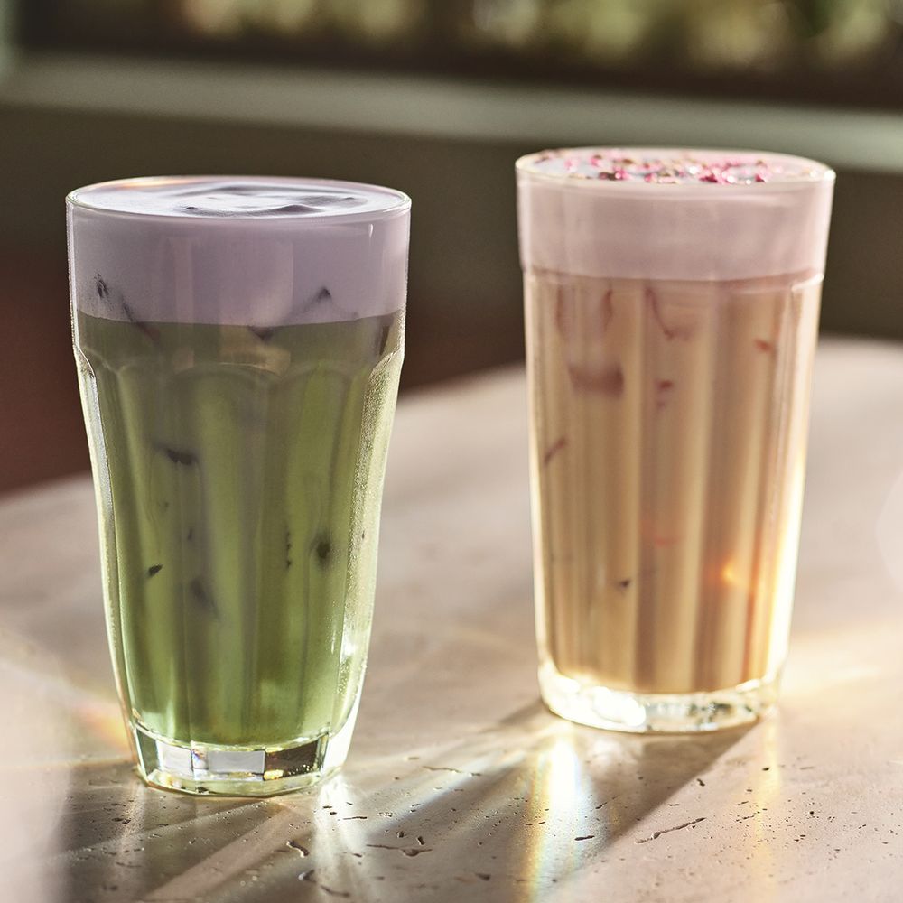 Start your experience with the refreshing Iced Chai Latte, a perfect blend of black tea, milk, and warming spices, or indulge in the spring-inspired Iced Cherry Chai Latte topped with creamy foam. The Iced Matcha Latte also stands out, showcasing smooth, rich green tea flavor.